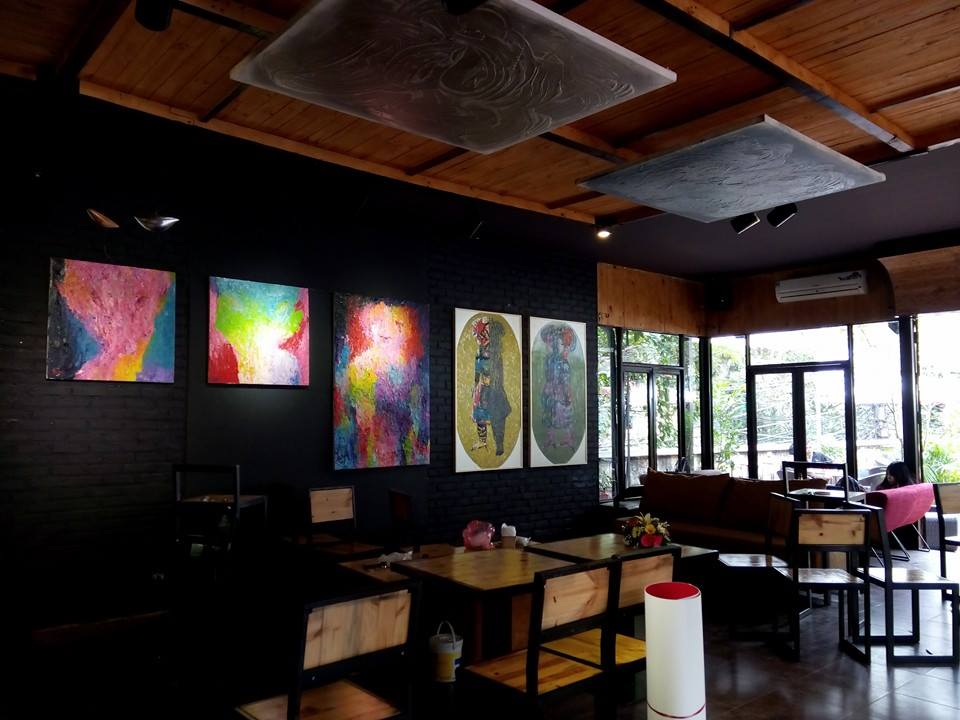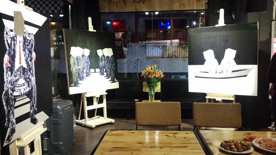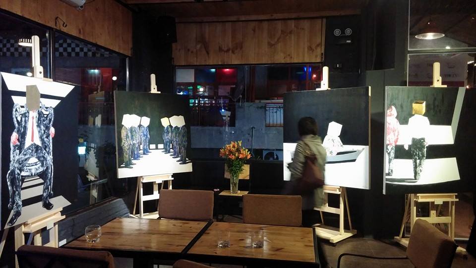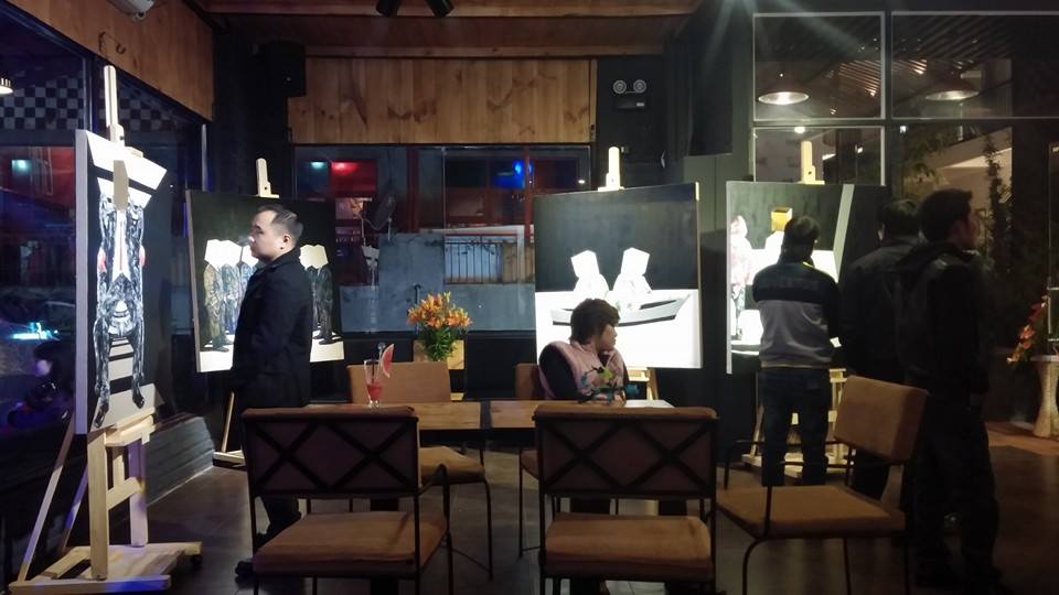Treo tác phẩm tại LaCa (Ảnh FB Le Thi Minh Tam)