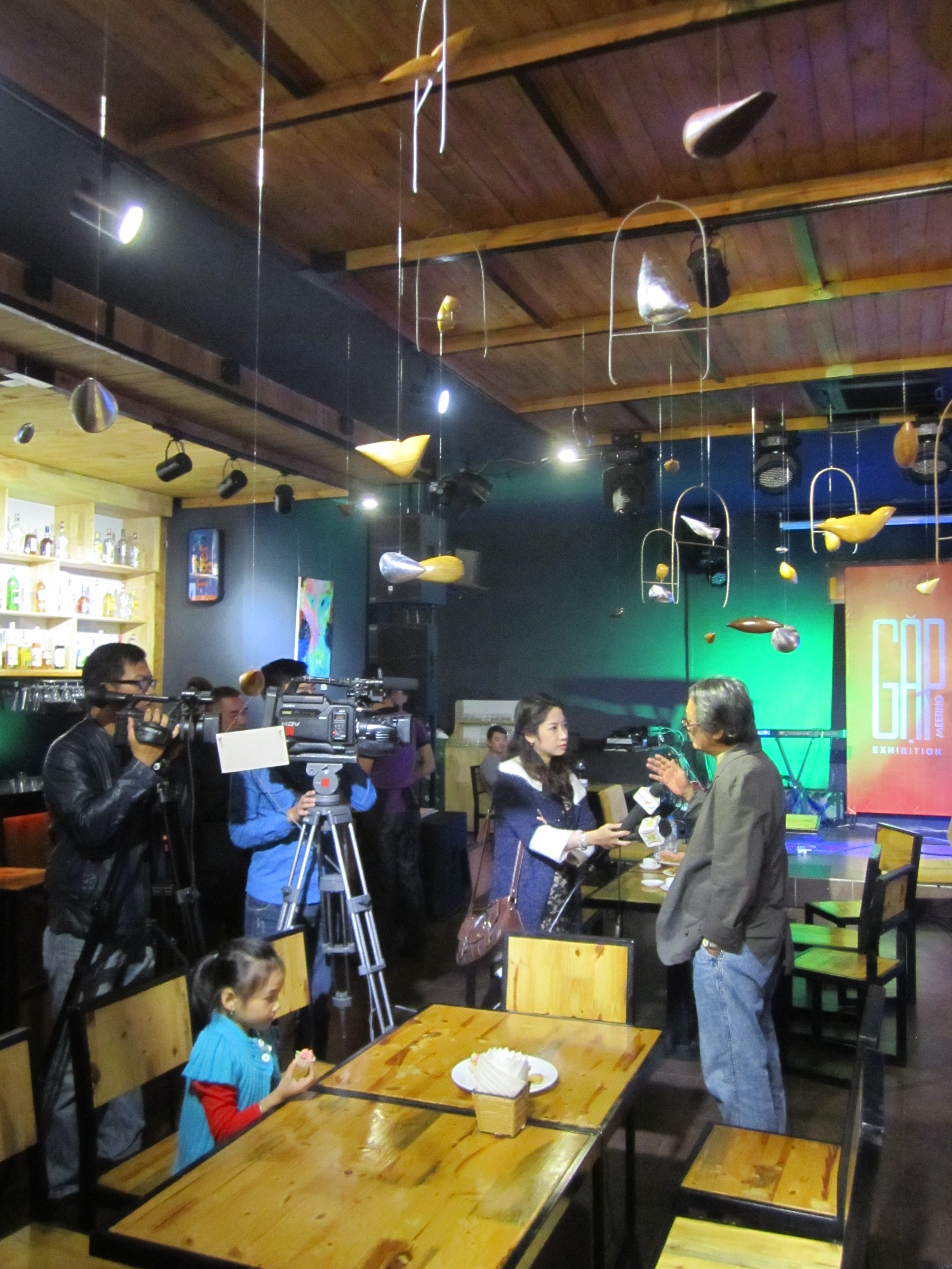 Hình ảnh tác phẩm “Những con chim trong không gian” buổi khai mạc triển lãm:
