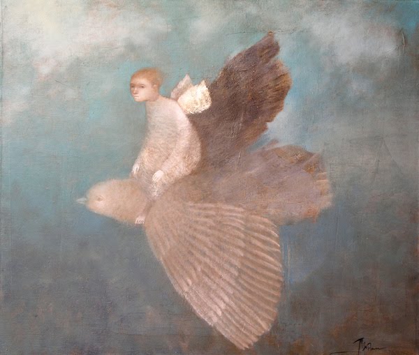 As A Cloud (Resting Angel), 78.74 x 78.74 inches, Oil on Canvas