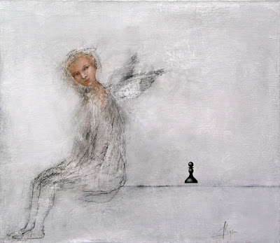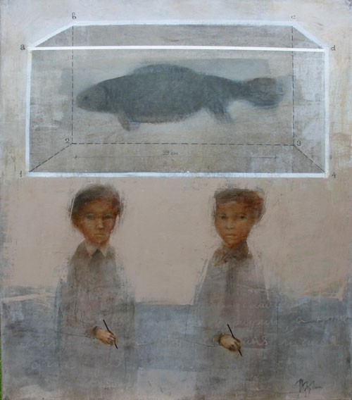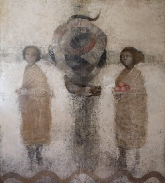 His gothic inspired structures are clearly influenced by his adoptive city. Terenin’s world is a rich mixture of both the old East and modern West. He sees his work as reflecting the conditions of modern man, yet his work is full of Biblical references as well as Russian literature. One can not escape a distinct sense of history in his work. But, whose history? This world of dreamy stillness, at times, reminiscent of the work of Balthus, is somehow strangely familiar. As though Terenin has tapped into a collective consciousness, of a time and place we have all visited but can not quite remember.