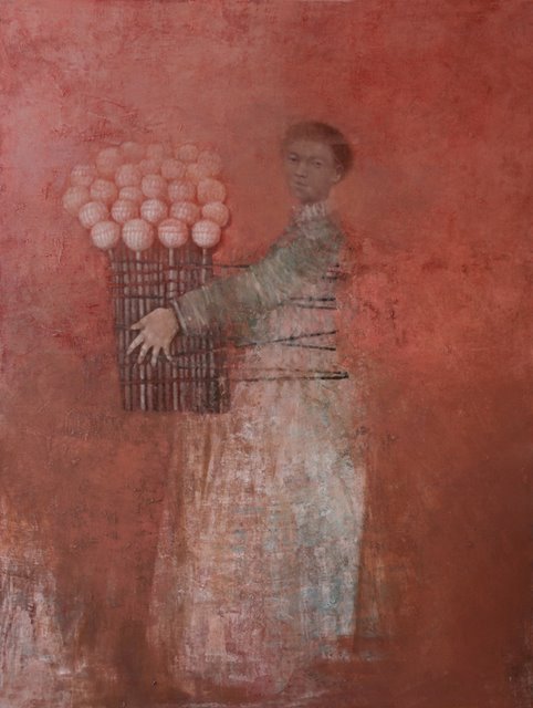 “A Figure with Flowers”, 68.9 x 53.15 inches, Oil on Canvas